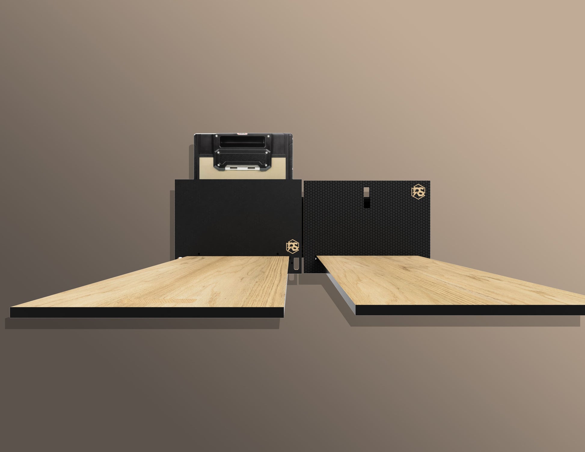 - Carpeted platform, wings, and drawer bases for added protection.
