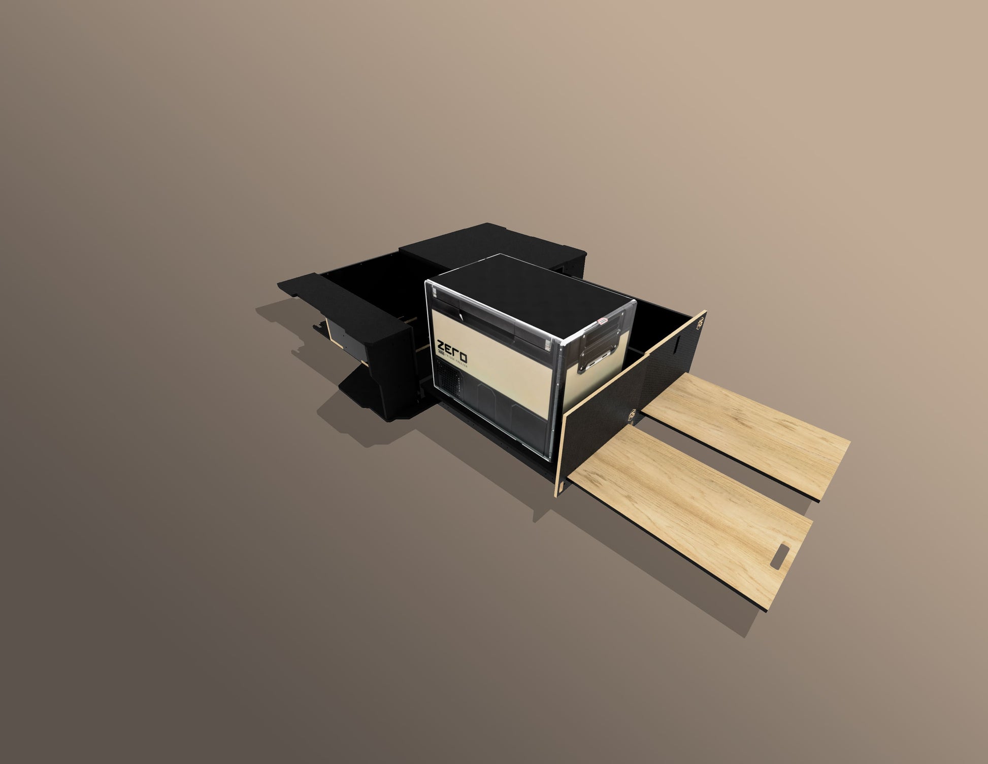 Introducing the Wanderer 400 – a versatile and functional setup designed for caravan and camper trailer owners who need extra storage and space for a chest-style fridge. The Wanderer 400 provides a practical cooling solution, ensuring easy access to your fridge while maximizing your storage capabilities.